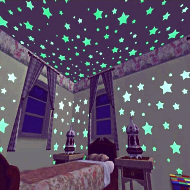 Stiker bintang 3d glow in the dark bisa menyala dalam gelap hiasandinding hiasankamar glowinthedark cocok untuk dekorasi kamar anak anda.